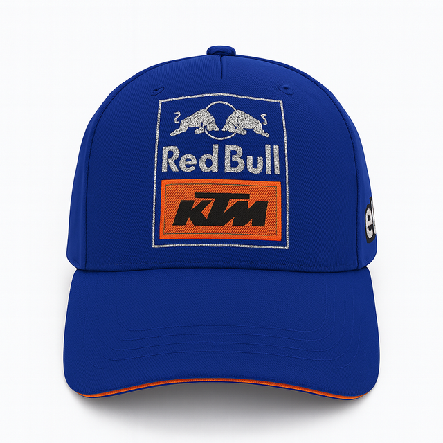 • Blue six panel 100% cotton baseball style cap with the Red Bull KTM Tech3