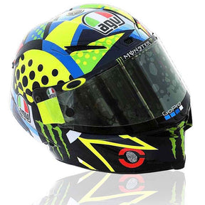 This 1:5 Mini Casco Replica showcases Valentino Rossi’s helmet from the 2020 MotoGP test sessions. Crafted with precision, it accurately reproduces the helmet’s vibrant graphics and colors. A must-have for VR46 enthusiasts, MotoGP fans, and collectors, this mini replica is durable, visually striking, and perfect for display in any racing memorabilia collection.