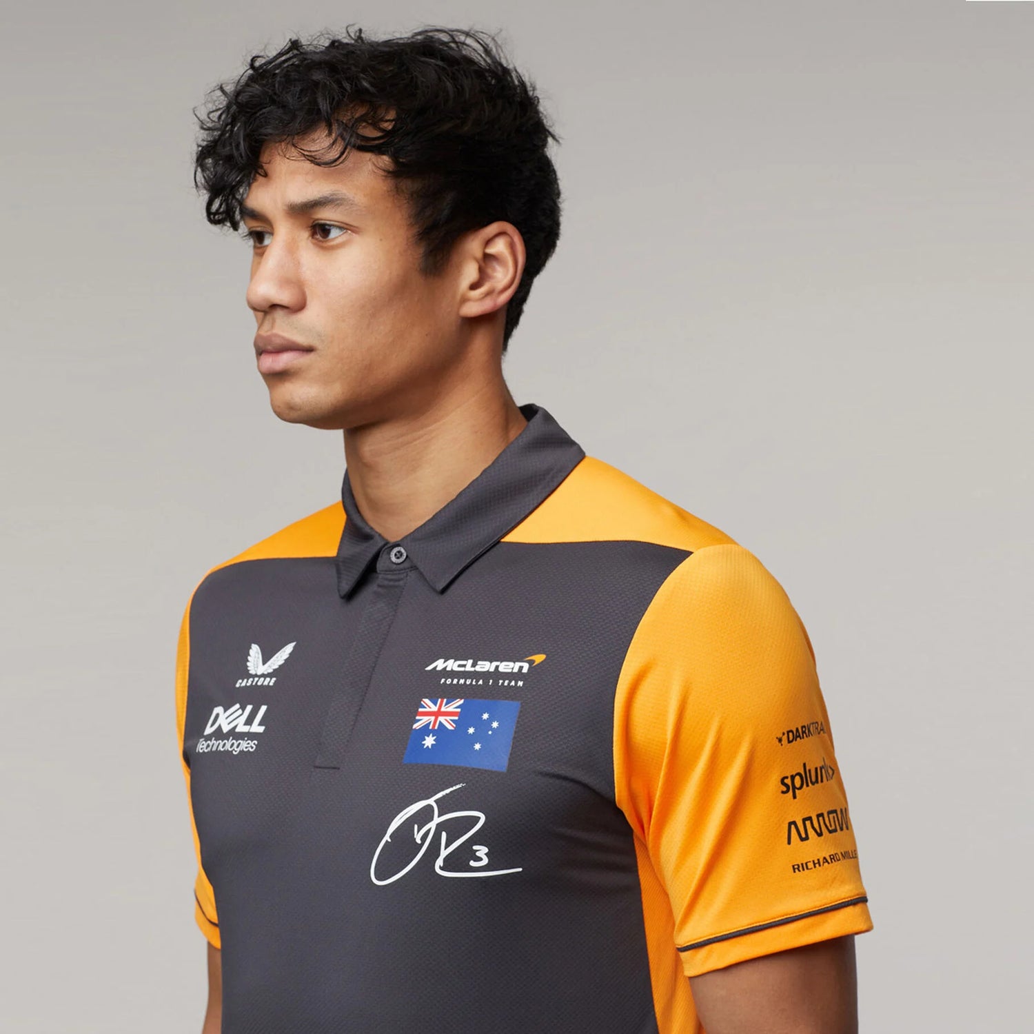 McLaren F1 Replica Drivers Daniel Ricciardo Polo. Produced by Castore and finished with team and partner logos. Ricciardo #3 on the back. Official Daniel Ricciardo Polo as worn by Danny, during the 2022 F1 World Championship
