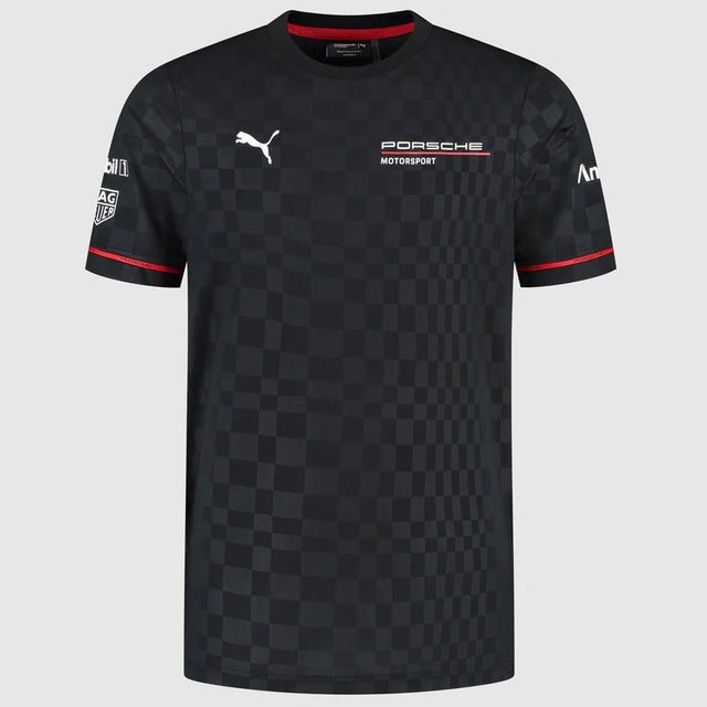 Part of the official Porsche Motorsport PUMA Team collection, the Team T-shirt has a crew neck collar, and features all the official Porsche Motorsport team and sponsor branding including the unique tonal motorsport derived fabric print.