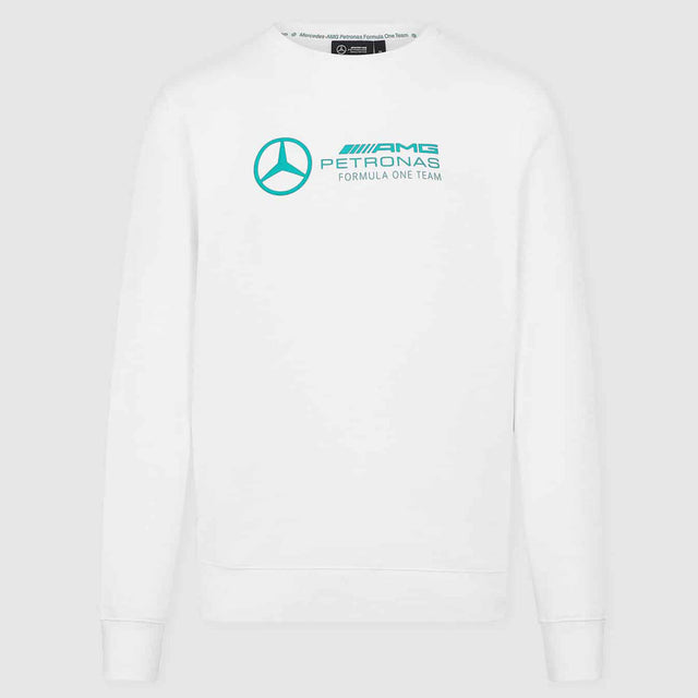 Mercedes AMG Petronas F1 Team White Front Logo Crew Neck Sweatshirt