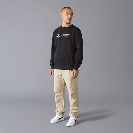 Mercedes AMG Petronas F1 Team Black Crew Neck Front Logo Sweatshirt
