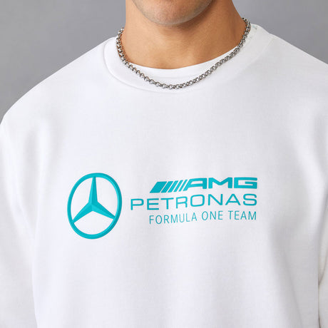 Mercedes AMG Petronas F1 Team White Front Logo Crew Neck Sweatshirt