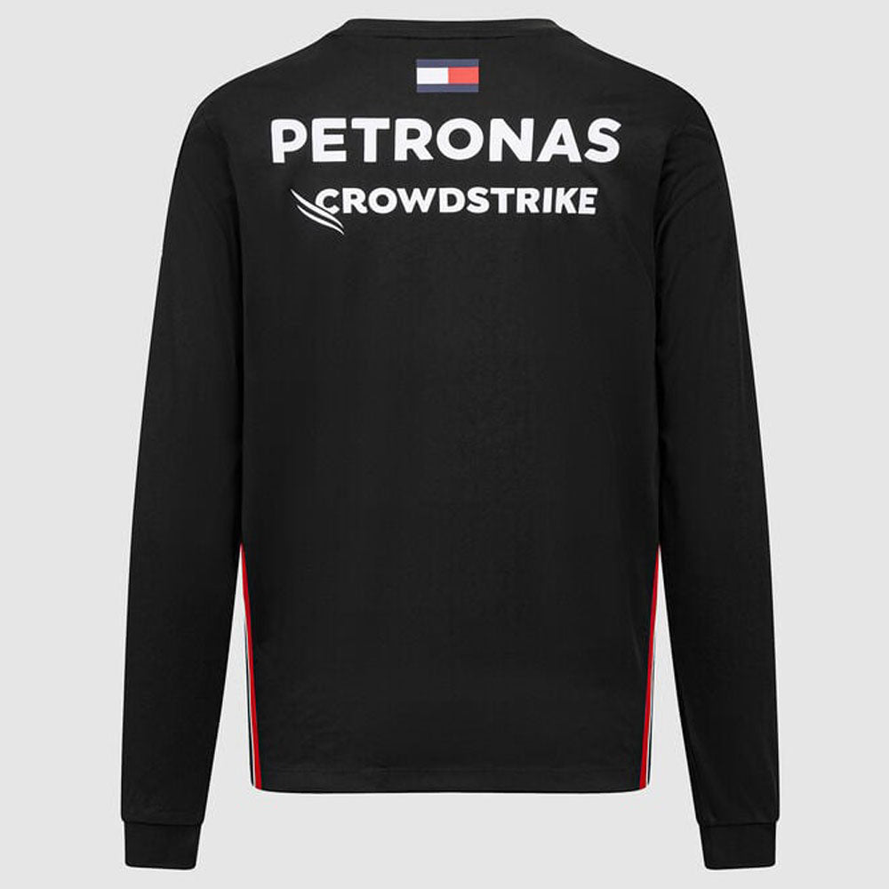 Get behind the Mercedes-AMG Petronas F1 Team with the official 2023 Long Sleeve Team T-shirt, as worn by Lewis and George throughout Formula 1 race weekends. The Long Sleeve T-shirt features all the official team and sponsor branding from the 2023 F1 season. Short Sleeve version also available.