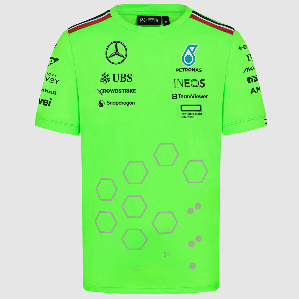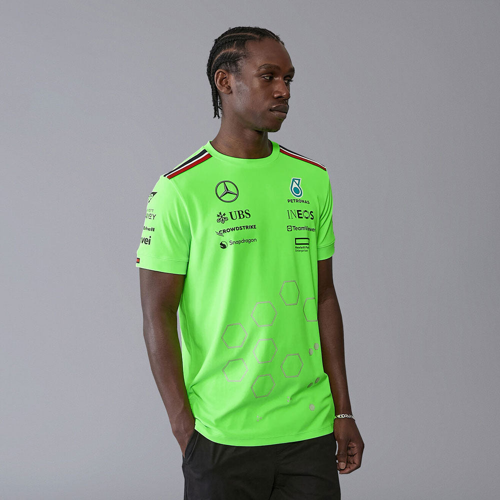 Mercedes AMG Petronas F1 Team Replica Mens Team Set up T-Shirt | Neon Green