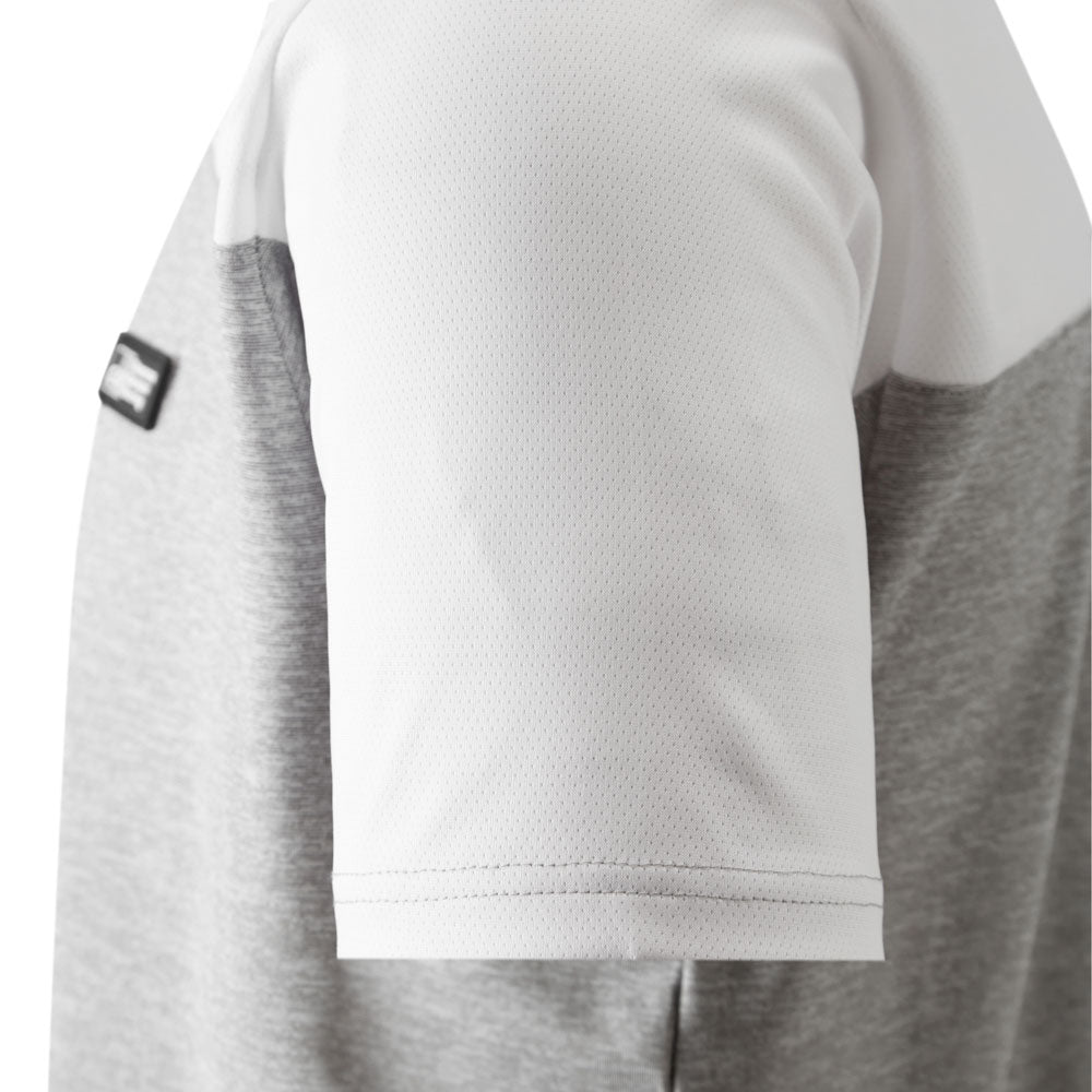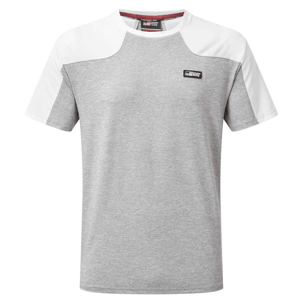 Our super-lightweight white tech-tee with airflow mesh panels across the shoulders and arms is designed for maximum comfort, durability and style that won't be out of place trackside or on the court.