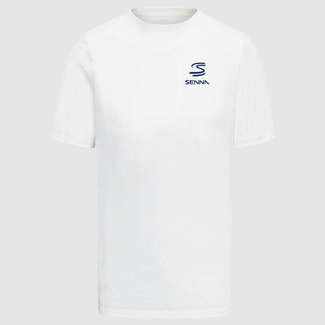 Ayrton Senna White SS Logo Monaco Back Graphic Tee Shirt